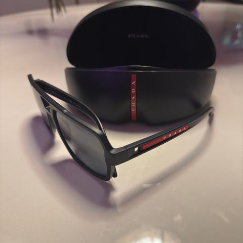 Prada unisex solbriller rektangulær sort stel med brune glas