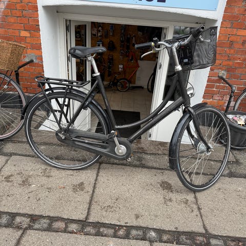 Total tip top nyistandsat, smurt, strammet og justeret hollandsk kvalitetscykel i super flot matsort stand. Cyklen står nærmest fuldstændig som ny, stort set uden brugsspor. En cykel der er blevet passet rigtig godt på, og altid har været opbevaret indendørs. Alt virker 100 %, og cyklen kører og fungerer som fra fabrikken, uden mislyde, defekter, slør eller skavanker nogen steder. Kraftige punkterfri dæk. Ny frisk kæde, nye fastmonterede lygter, ny Shimano gearskifter + kabel, ny komfortabel blød og bred sadel med løftegreb, ny sadelpind, ny rummelig kurv. nye ergo-håndtag og ny lås. Rustfri model, med alustel og aluhjul. Indvendige gear. Shimano rullebremse for. Fuldt lukket kædeskærm. Højt styr. Kraftig vindstabil støttefod. Håndbremse for og fodbremse bag. Køreklar og komplet med kurv, klokke, bagagebærer, støttefod, lygter, reflekser og fastmonteret ringlås med 2 nøgler. Yderst behagelig, rank, høj og flot kørestilling. Passer til høj som lav, og jeg indstiller styr og sadel så cyklen passer lige til dig. Obs, for og bagskærm har begge et par små buler. Str. 54 cm. 7 gear. Stelnr.: WTVBA0221784E. (Ved henvendelse angående cyklen, for hurtigere respons, sms eller ring venligst på 22 13 21 30, eller benyt messenger ved at trykke på "gå til varen" knappen).