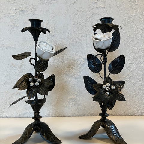 Franske antikke Lysestager i god stand trods alder - højde 25 cm. - Sælges for kr. 1.800.- Sendes med forsikring for kr. 125.-