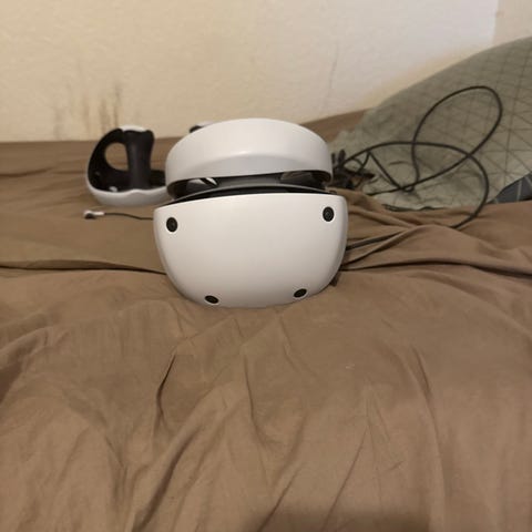 Flot og velholdt Sony VR2-headset med medfølgende VR-controllere til PS5.