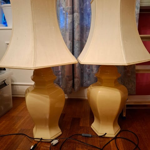 Højde 75 cm og skærm 40 cm i diameter.