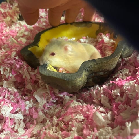 Han er efter to ren artet Campbells dværghamster og er af farve. Lillac fawn og er 15 uger gammel 😊