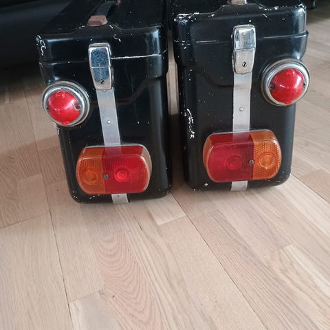 2 stk flotte Retro glasfiber sidetasker, 40x30x20,med lygter, kan sendes