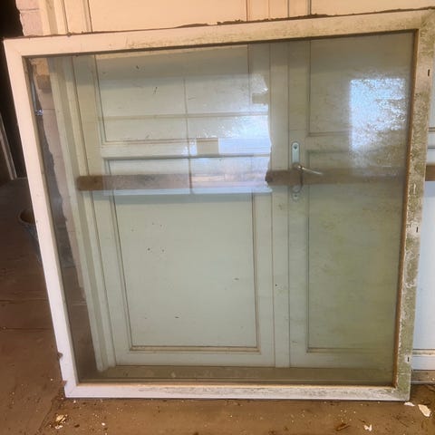 Fastkarmsvindue, b: 41 h: 41, Dobbelt vindue. Det er ikke termovindue - men to glas med god afstand imellem.