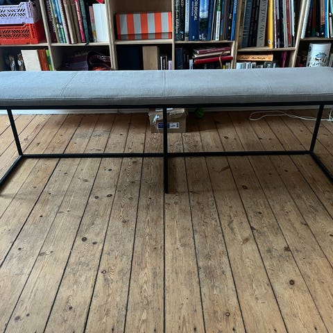 BoConcept bænk model London. Enkelthed, kvalitetet og muligheder. Bænken kan bruges i entreen, soveværelset, køkkenet/alrummet eller et fjerde sted, mulighederne er mange. Sædet er betrukket med blåt velour som giver god komfort.
