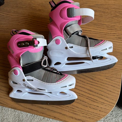 CanTop skøjter i str 34 (små i størrelsen). Klassiske hvide skøjter med snørelukning og fast hælkappe. Blad i metal med tænder foran til bedre afsæt på isen. Egnet til børn til almindelig skøjteløb og leg på isbanen. Skøjterne har stort set ikke været brugt, men der er nogle få brugsspor.