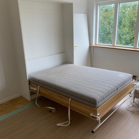 Flot og stilren skabsseng / murphy bed, perfekt til en studiolejlighed eller stue, hvor der ønskes en smart soveplads til gæster.