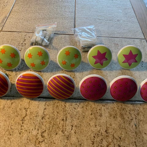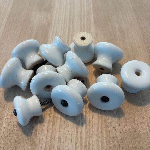 Greb, porcelæn, 6 stk. gamle, fine porcelænsgreb til fx køkkenskabe.