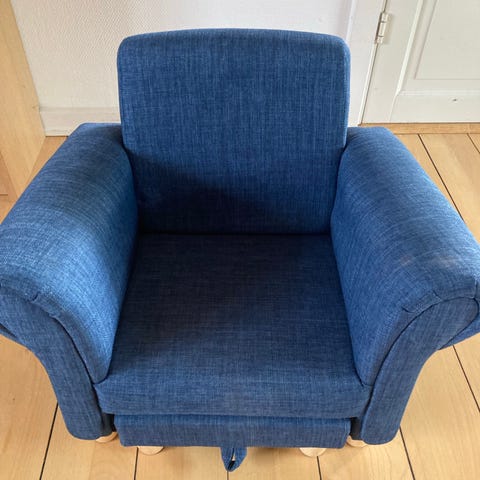 Børnelænestol som fremstår som ny uden slitage og pletter.
