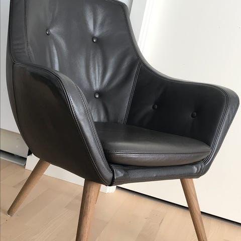 sort incl. ægte islandsk lammeskind fra skind og uld i hornslet. nypris ialt 1000 kr. Stol uden skind 100 kr.