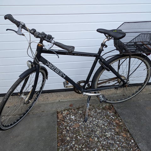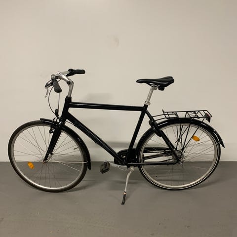 Von Backhaus herrecykel med 7 gear. Ny kæde og gode dæk. Ny ringlås med to nøgler. Rullebremse på forhjulet og fodbremse på baghjulet. Batterilygter for og bag. Lige serviceret, kører fint. Ser næsten ud som en ny. Passer til en højde på 176-190 cm