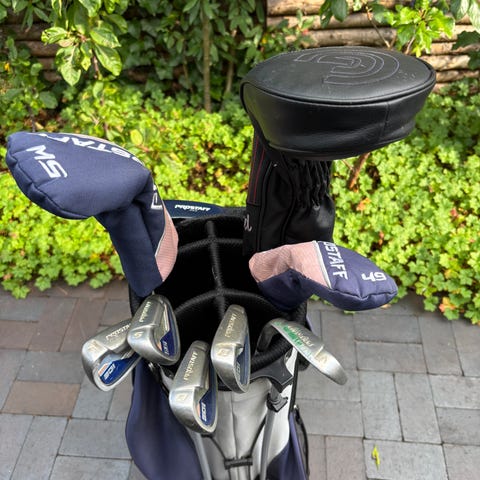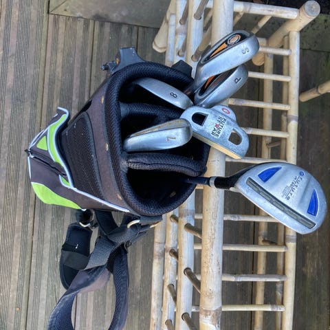 Cleveland golfsæt Medium for 110-135 cm høj (7-9 år). Super god begyndersæt i fin stand med bærebag. Tilhørende golfvogn fra Fastfold.