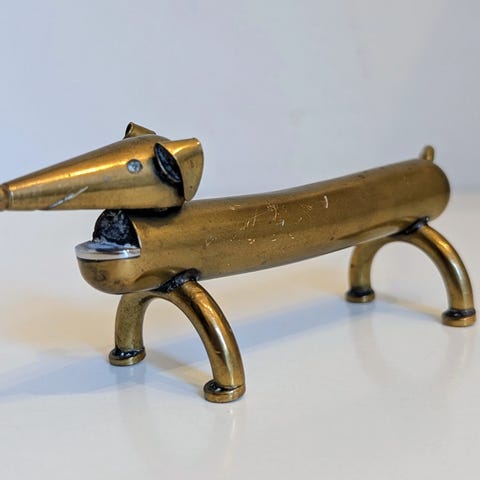 Til salg er en enestående, solid flaskeåbner lavet af messing, ideel til samlere, elskere af vintage-stil og som et elegant dekorativt element.