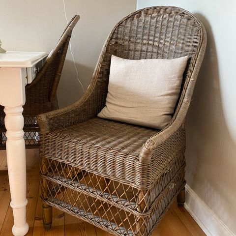 6. stk. spisebordsstole, kurvestole i gråvasket flet /rattan.
