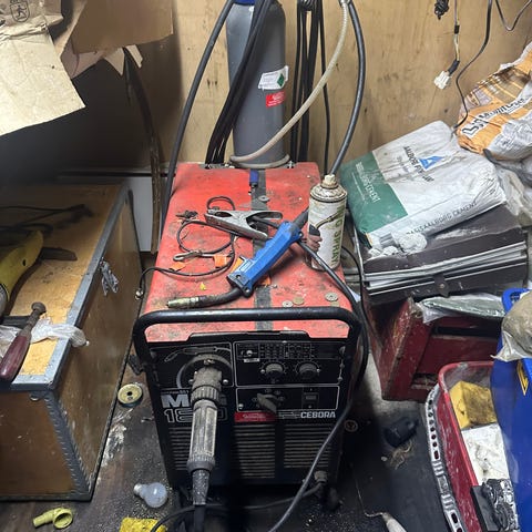Cebora MIG 190 svejseapparat med gasflaske og svejsehjelme