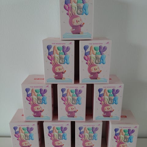 Labubu vinylfigur fra Pop Mart. Den er en del af The Monsters Lazy Yoga Series.