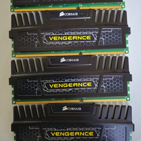 Ældre high-end RAM sæt. Bestående af 4 stk. 2GB DDR3 moduler (2 stk. 4GB kits).