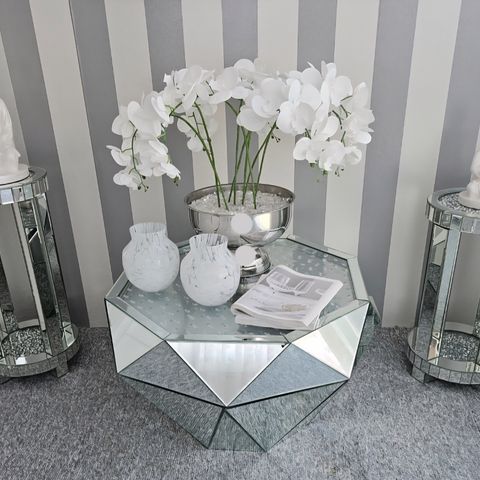 Sælger spejl sofabord næsten så god som ny. Blot et enkelt skår ved det ene hjørne og en enkelt ridse, som ikke umiddelbart ses. Sælges da vi har fået en baby. Købt for 1,5 år siden. Ny pris 4.099,-