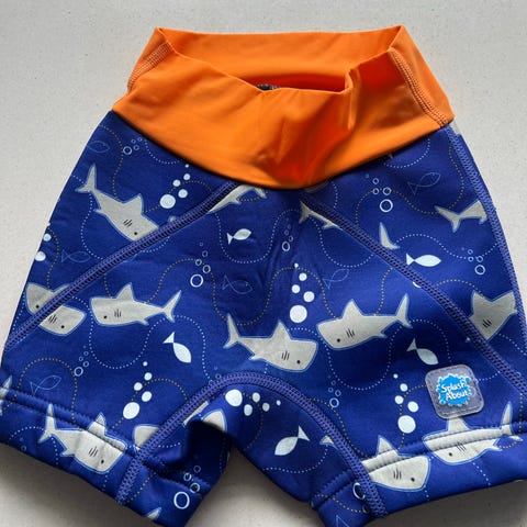 Badeble til børn i størrelse 80. Badeblen er flerfarvet med mønster og har elastik i talje og benåbninger for at sikre en god pasform. Materialet er 83 % polyamid og 17 % elastan, som er velegnet til brug ved svømning. Egnet til små børn omkring 12 måneder, afhængigt af barnets størrelse.