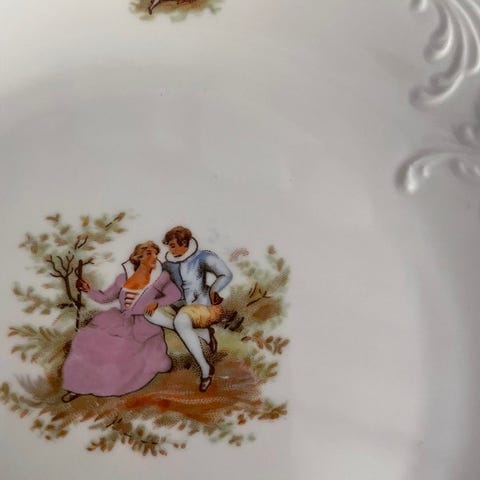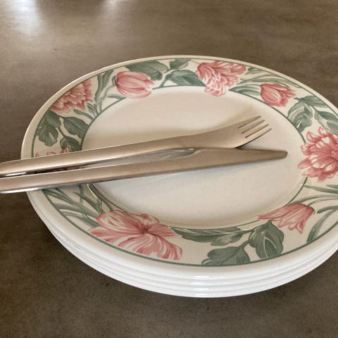 4 flotte middagstallerkener. Kvalitet og romantik på en gang. Med grøn kant.