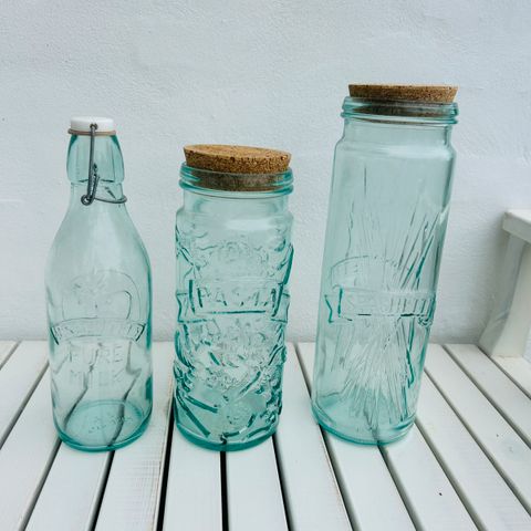 Glas beholder til pasta med korklåg