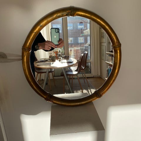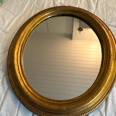 Ellos rundt spejl med guldfarvet ramme
