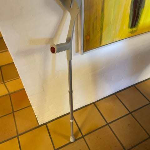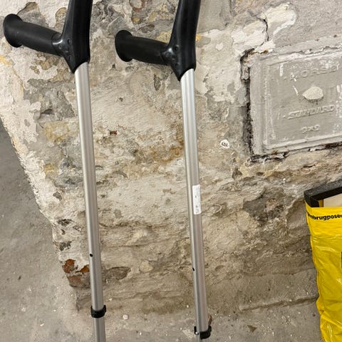 Krykker i justerbar længde med håndtag og armbøjle i sort plast. Stel i aluminium med teleskopfunktion og højdeindstilling via trykknapper. Gummifødder i bunden for bedre stabilitet på gulv og andre underlag. Velegnet som ganghjælpemiddel til voksne, der har behov for ekstra støtte ved gang eller under genoptræning.