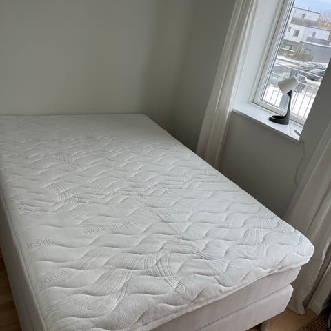 140x200 cm, fast, beige seng. Ingen tegn på slid eller nogen skader.