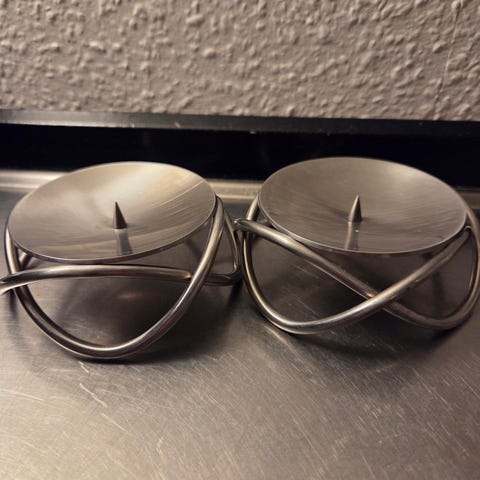 Georg Jensen lysestager i sort. Er usikker på materialet men er trykt med teksten “georg jensen gold plated B”