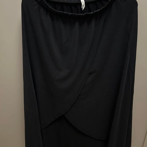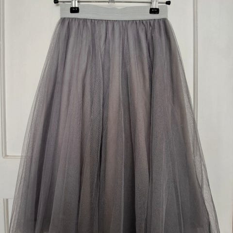 Grå nederdel i str. S/M, knælængde, med elastisk talje (gummibånd) for en behagelig og fleksibel pasform. Fremstillet i elastan, viskose og polyamid. Velegnet til hverdag, arbejde og casual outfits. En enkel basic nederdel nem at style året rundt.