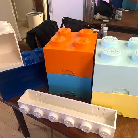 LEGO klodser blandet lot. Kasser med forskellige LEGO dele, herunder almindelige klodser, plader, hjul, skinner, specialdele og enkelte større byggede elementer. Egnet til frit byggeri, udvidelse af eksisterende samlinger eller reservedele til diverse LEGO sæt.
