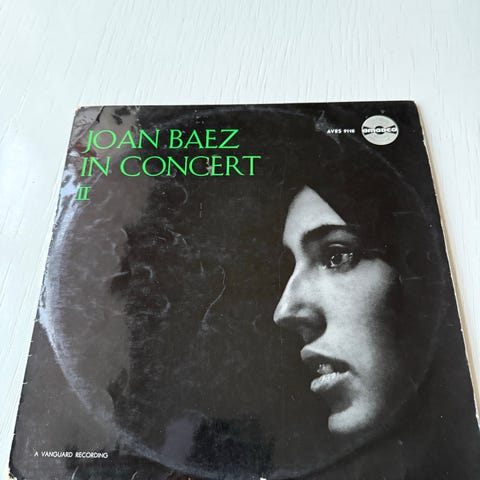 Joan Baez In Concert Part 2 lp. Vinyludgivelse på pladeselskabet Vanguard. Albummet er et livekoncertoptagelse med Joan Baez og indeholder numre optaget ved forskellige koncerter. Coveret har sangtekster og information om indspilningen på bagsiden.