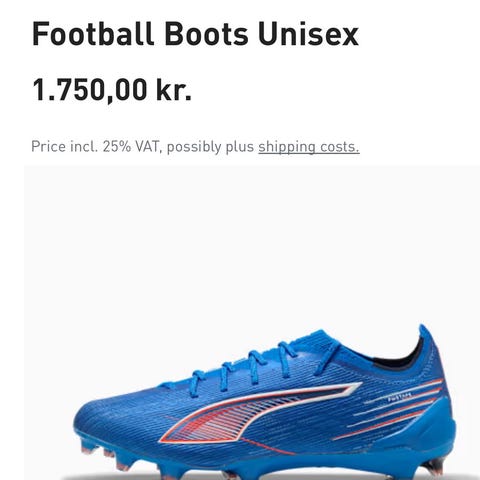 Puma Ultra 6 Ultimate AG fodboldstøvler til voksne (herre) i størrelse 43. Modellen er designet til kunstgræs (AG) med støbt knopsål, der giver greb på kunstgræsbaner. Overdelen er i syntetisk materiale i farven ultra blue med hvide og rødlig-glødende detaljer. Snørelukning for justerbar pasform. Velegnet til fodboldtræning og kamp på kunstgræsbaner. Brugt 1-2 gange. Indlæg aldrig brugt
