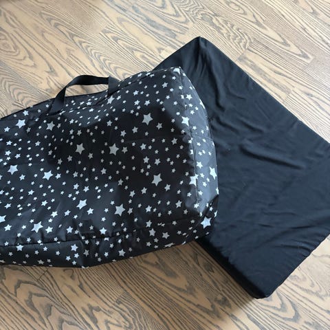 Når den pakkes sammen, rulles soveoosen ind i den integrerede bæretaske.