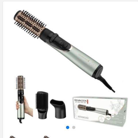 Sælger denne populære Remington Keratin Protect Rotating Air Styler, som kombinerer føntørring og styling. Den har keramisk belægning infunderet med keratin og mandelolie for at give glans og beskytte dit hår.