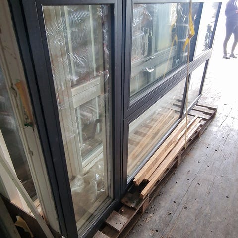 Dobbelt lyddør med karm uden bundstykke, mrk Trehøje
