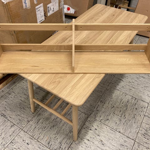 FDB Møblers B5 hylde, i lakeret egetræ Hylden har et lille mærke som vist på billedet men ellers i god stand. Andre mindre kosmetiske fejl kan forekomme.