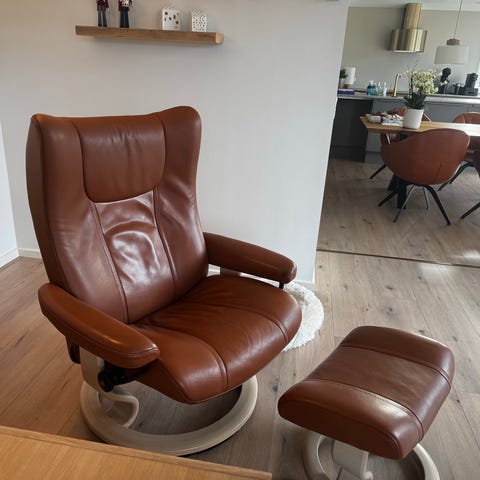 Stressless model Wing str small plus skammel - har en svag lugt af røg