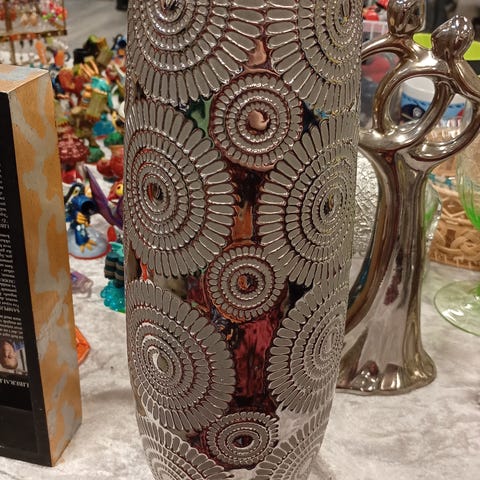 Skål og vase til dekoration i blå nuancer. Sættet består af en rund skål og en høj, rund vase med glansfuld overflade og mosaikagtigt mønster indvendigt/udvendigt. Egnet som borddekoration, til opbevaring af mindre genstande eller som pyntegenstande i stue, køkken eller entré.