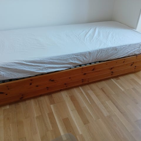 Den har synlige brugsspor men fungerer som det skal og det er ikke noget man ser når først lagen osv er på.
