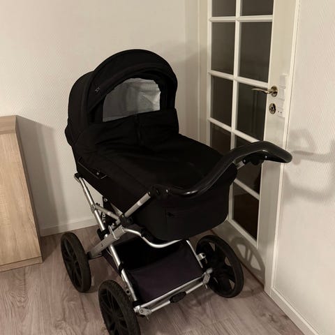 Odder North barnevogn med faste hjul. Den er rigtig fin og velholdt, kører som den skal. Har altid stået indenfor, når den ikke var i brug. Den har almindelig brugsspor, men fremstår i fin stand.