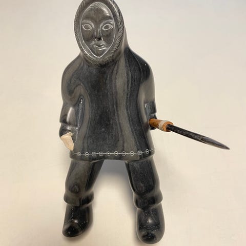 Grønlandsk kvinde med børn i sælskind, ca 11 cm høj