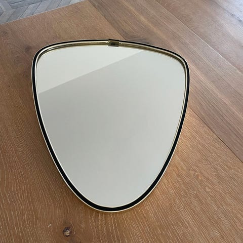 1960'er spejl med form som 'våbenskjold' med krom-beslag