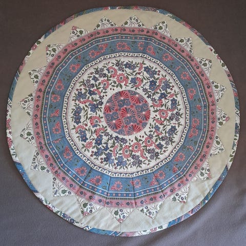 Rund Dug. Hånd arbejde Patchwork. I flotte klare farver Diameter 39 cm