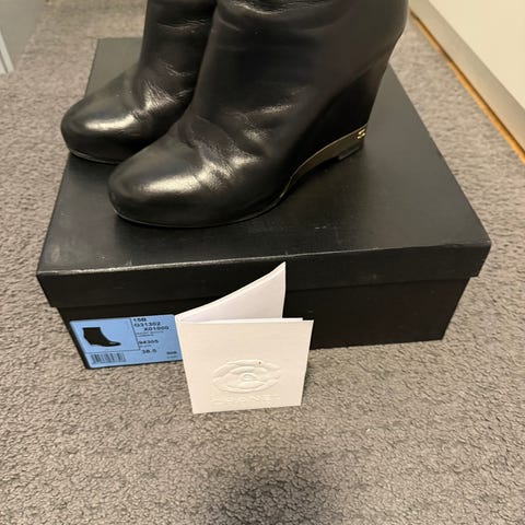 Super fin støvlet fra Chanel, svarer til en 38. Ægte. Men har ikke kvitteringen mere. Der er en i skoen og den rigtige æske følger med.