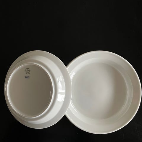 6 stk. hvide Royal Copenhagen tallerkener. Diameter: ca. 20,5 cm. Klassisk, glat hvid model (uden dekoration). Ingen skår, revner eller afslag. Sælges samlet.