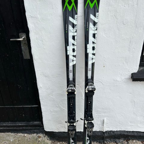 Völkl alpinski med bindinger i sort og grøn. Skiene har integrerede bindinger, som kan justeres til passende støvlelængde. Velegnet til alpint skiløb på pister. Designet med markerede kanter og allround-form, som giver kontrol på hårdt underlag og varieret terræn. Suveræne på de fleste underlag- men udmærker sig ved at være meget stabile på isede overflader - når pisten begynder at blive lidt svær.
