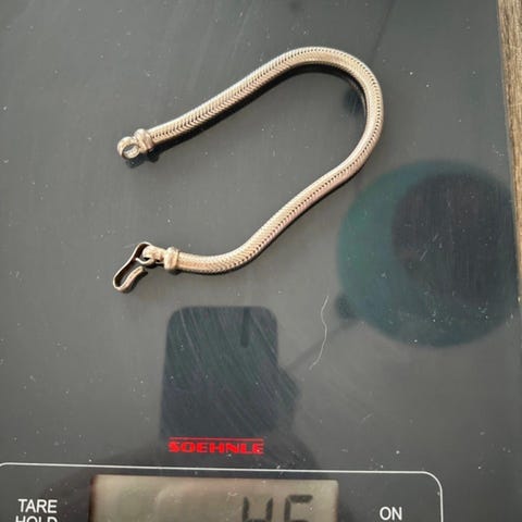 & Other Stories smykke vedhæng i sølv til unisex. Vedhænget er formet som en hammer med dekorerede detaljer på forsiden og glat bagside. Det har et hul i toppen til kæde eller snor. Smykket er egnet som halskædevedhæng eller til brug på armbånd eller andre smykker, hvor der ønskes et sølvvedhæng i hammerform.