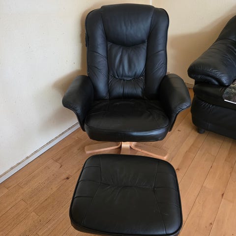 Læder stol med skammel