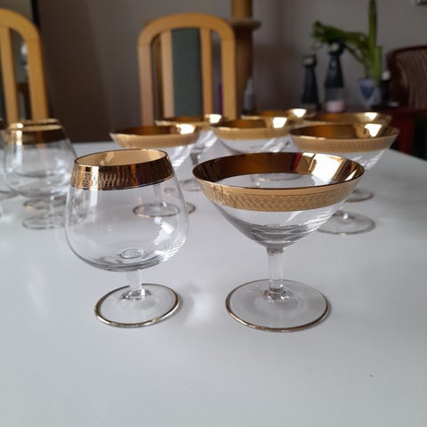 Lyngby Glas, Tosca, Dessertskål, krystalglas med guldslibning, 8cm høj, 10cm i diameter . Designet for Lyngby glasværtk i 1961. Hel og fin stand. Pris 100kr. stk